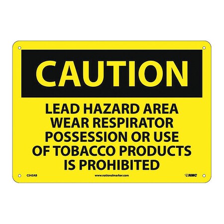 NMC C545AB OSHA Sign, Legend "CAUTION - LEAD HAZARD AREA WEAR RESPIRATOR POSSESSION OR USE OF TOBACCO PRODUCTS IS PROHIBITED", 14" Length x 10" Height, Aluminum, Black on Yellow