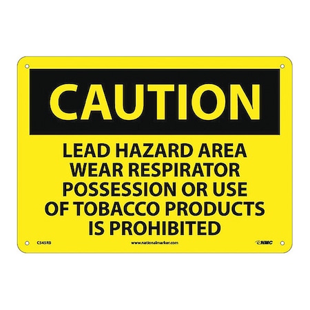 NMC C545RB OSHA Sign, Legend "CAUTION - LEAD HAZARD AREA WEAR RESPIRATOR POSSESSION OR USE OF TOBACCO PRODUCTS IS PROHIBITED", 14" Length x 10" Height, Rigid Plastic, Black on Yellow