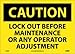 - Header "CAUTION" and legend "LOCK OUT BEFORE MAINTENANCE OR ANY OPERATOR ADJUSTMENT"