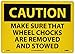| Feature | Header "CAUTION" and legend "MAKE SURE THAT WHEEL CHOCKS ARE REMOVED AND STOWED" |