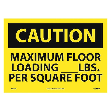 NMC C557PB OSHA Sign, Legend "CAUTION - MAXIMUM FLOOR LOADING__LBS. PER SQUARE FOOT", 14" Length x 10" Height, Pressure Sensitive Vinyl, Black on Yellow