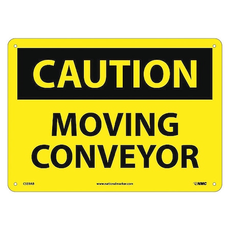 NMC C559AB OSHA Sign, Legend "CAUTION - MOVING CONVEYOR", 14" Length x 10" Height, Aluminum, Black on Yellow