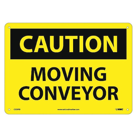 NMC C559RB OSHA Sign, Legend "CAUTION - MOVING CONVEYOR", 14" Length x 10" Height, Rigid Plastic, Black on Yellow
