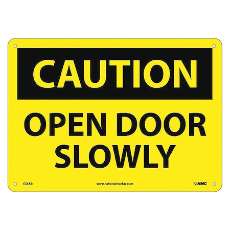 NMC C55AB OSHA Sign, Legend "CAUTION - OPEN DOOR SLOWLY", 14" Length x 10" Height, Aluminum, Black on Yellow