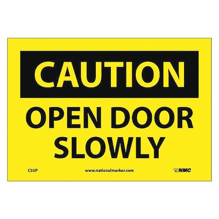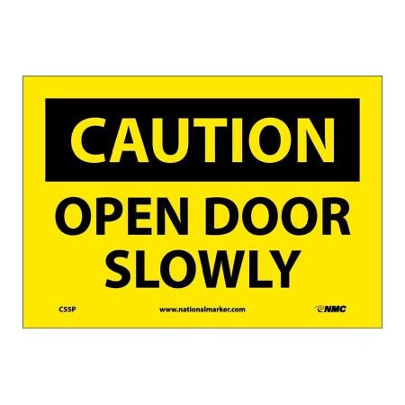 NMC C55P OSHA Sign, "CAUTION OPEN DOOR SLOWLY", 10" Width x 7" Height, Pressure Sensitive Vinyl, Black On Yellow