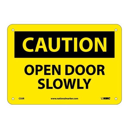 NMC C55R OSHA Sign, Legend "CAUTION - OPEN DOOR SLOWLY", 10" Length x 7" Height, Rigid Plastic, Black on Yellow
