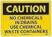 | Feature | Header "CAUTION" and legend "NO CHEMICALS IN DRAINS USE CHEMICAL WASTE CONTAINERS" |