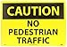 | Feature | Header "CAUTION" and legend "NO PEDESTRIAN TRAFFIC" |
