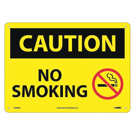 NMC C564AB CAUTION - NO SMOKING Sign - 14 in. x 10 in., Black Text on Yellow, Aluminum Caution Sign with Graphics