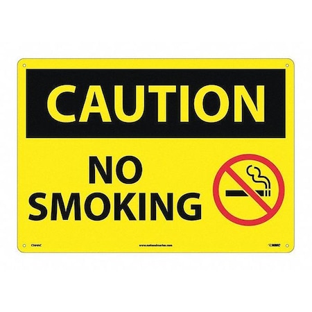 NMC C564AC OSHA Sign, Legend "CAUTION - NO SMOKING" with Graphic, 20" Length x 14" Height, Aluminum, Black on Yellow