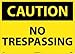 | Feature | Header "CAUTION" and legend "NO TRESPASSING" |
