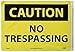| Feature | Header "CAUTION" and legend "NO TRESPASSING" |