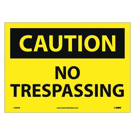 NMC C566PB CAUTION - NO TRESPASSING Sign - 14 in. x 10 in., PS Vinyl Caution Signage with Black Text on Yellow Base