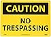 | Feature | Header "CAUTION" and legend "NO TRESPASSING" |