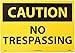 - Header "CAUTION" and legend "NO TRESPASSING"