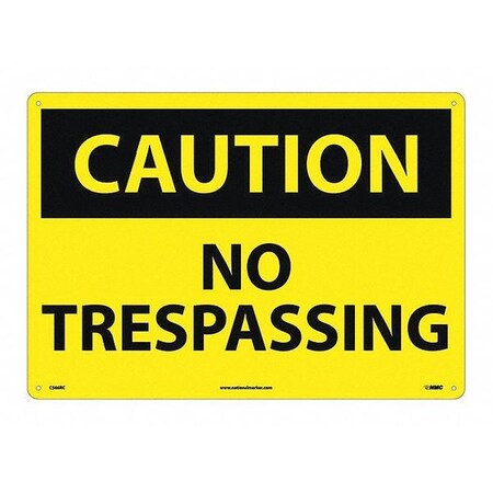 NMC C566RC OSHA Sign, Legend "CAUTION - NO TRESPASSING", 20" Length x 14" Height, Rigid Plastic, Black on Yellow