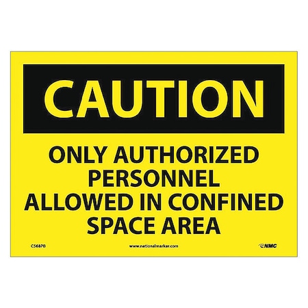 NMC C568PB OSHA Sign, Legend "CAUTION - ONLY AUTHORIZED PERSONNEL ALLOWED IN CONFINED SPACE AREA", 14" Length x 10" Height, Pressure Sensitive Vinyl, Black on Yellow