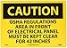- Header "CAUTION" and legend "OSHA REGULATIONS AREA IN FRONT OR ELECTRICAL PANEL MUST BE KEPT CLEAR FOR 42 INCHES"