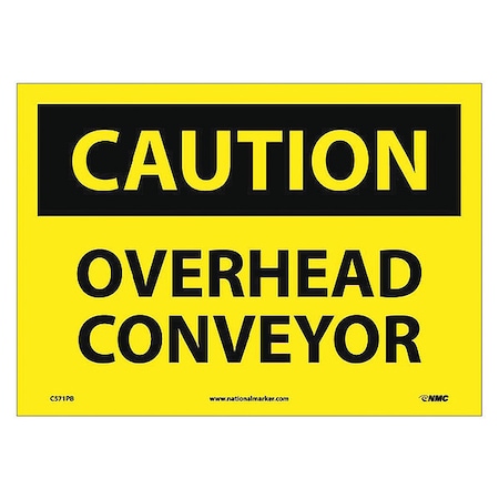 NMC C571PB OSHA Sign, Legend "CAUTION - OVERHEAD CONVEYOR", 14" Length x 10" Height, Pressure Sensitive Vinyl, Black on Yellow