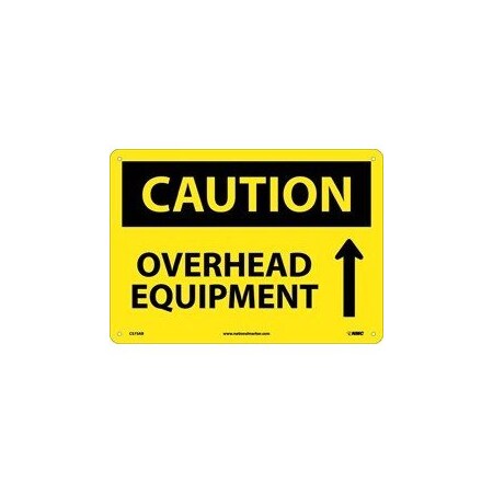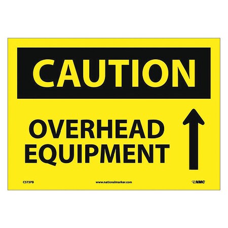 NMC C573PB OSHA Sign, Legend "CAUTION - OVERHEAD EQUIPMENT" with Upward Arrow, 14" Length x 10" Height, Pressure Sensitive Vinyl, Black on Yellow