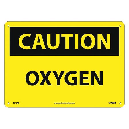NMC C575AB OSHA Sign, Legend "CAUTION - OXYGEN", 14" Length x 10" Height, Aluminum, Black on Yellow