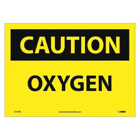 NMC C575PB OSHA Sign, Legend "CAUTION - OXYGEN", 14" Length x 10" Height, Pressure Sensitive Vinyl, Black on Yellow