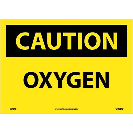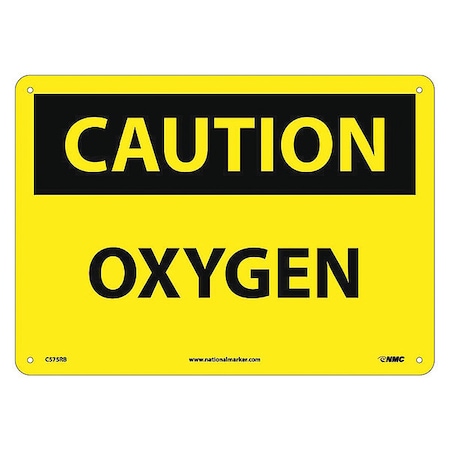 NMC C575RB OSHA Sign, Legend "CAUTION - OXYGEN", 14" Length x 10" Height, Rigid Plastic, Black on Yellow