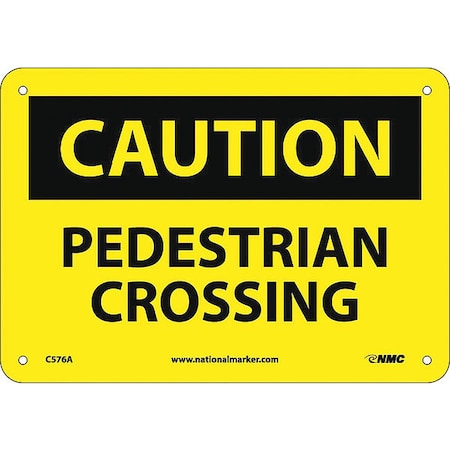NMC C576A OSHA Sign, Legend "CAUTION - PEDESTRIAN CROSSING", 10" Length x 7" Height, Aluminum, Black on Yellow