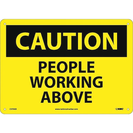 NMC C579AB OSHA Sign, Legend "CAUTION - PEOPLE WORKING ABOVE", 14" Length x 10" Height, Aluminum, Black on Yellow
