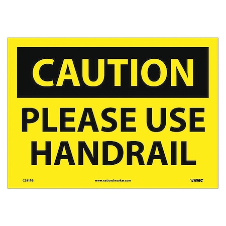 NMC C581PB OSHA Sign, Legend "CAUTION - PLEASE USE HANDRAIL", 14" Length x 10" Height, Pressure Sensitive Vinyl, Black on Yellow