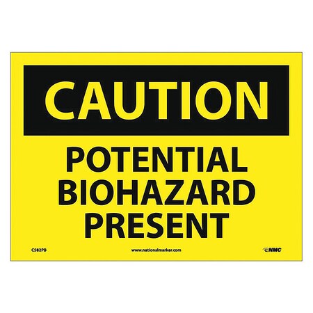 NMC C582PB OSHA Sign, Legend "CAUTION - POTENTIAL BIOHAZARD PRESENT", 14" Length x 10" Height, Pressure Sensitive Vinyl, Black on Yellow