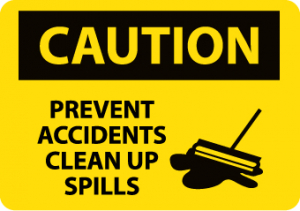 | Feature | Header "CAUTION" and legend "PREVENT ACCIDENTS CLEAN UP SPILLS" with Graphic |