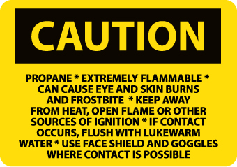 - Header "CAUTION" and legend "PROPANE EXTREMELY FLAMMABLE CAN CAUSE EYE AND SKIN BURNS AND FROSTBITE KEEP AWAY FROM HEAT..."