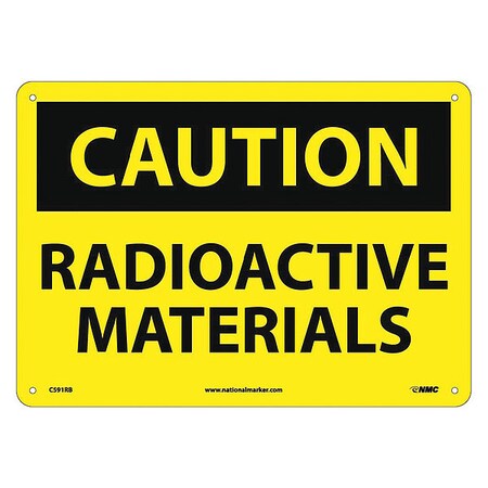 NMC C591RB OSHA Sign, Legend "CAUTION - RADIOACTIVE MATERIALS", 14" Length x 10" Height, Rigid Plastic, Black on Yellow