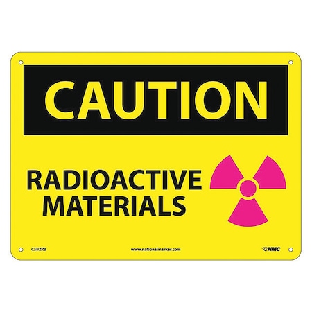 NMC C592RB OSHA Sign, Legend "CAUTION - RADIOACTIVE MATERIALS" with Graphic, 14" Length x 10" Height, Rigid Plastic, Black/Pink on Yellow