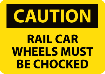 | Feature | Header "CAUTION" and legend "RAIL CAR WHEELS MUST BE CHOCKED" |