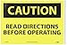 | Feature | Header "CAUTION" and legend "READ DIRECTIONS BEFORE OPERATING" |