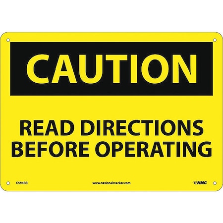 NMC C594RB OSHA Sign, Legend "CAUTION - READ DIRECTIONS BEFORE OPERATING", 14" Length x 10" Height, Rigid Plastic, Black on Yellow
