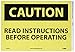 - Header "CAUTION" and legend "READ INSTRUCTIONS BEFORE OPERATING"
