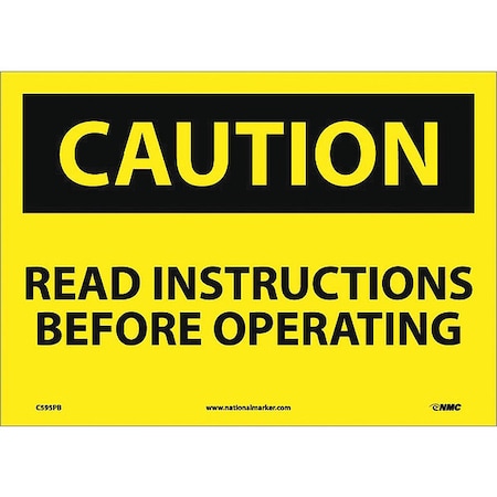 NMC C595PB OSHA Sign, Legend "CAUTION - READ INSTRUCTIONS BEFORE OPERATING", 14" Length x 10" Height, Pressure Sensitive Vinyl, Black on Yellow