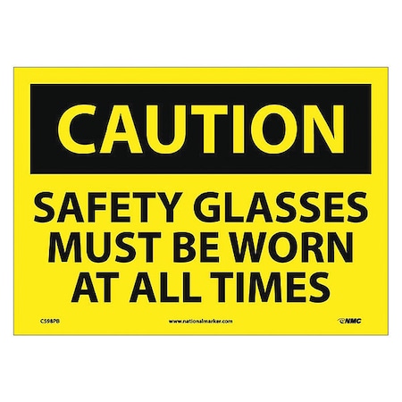 NMC C598PB CAUTION - SAFETY GLASSES MUST BE WORN AT ALL TIMES - 14 in. x 10 in. PS Vinyl Caution Sign with Yellow/Black Text on Black/Yellow Base