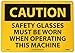 - Easily Visible: the legend “CAUTION - SAFETY GLASSES MUST BE WORN WHEN OPERATING THIS MACHINE” is printed in bold and legible text to ensure better readability along with visibility
