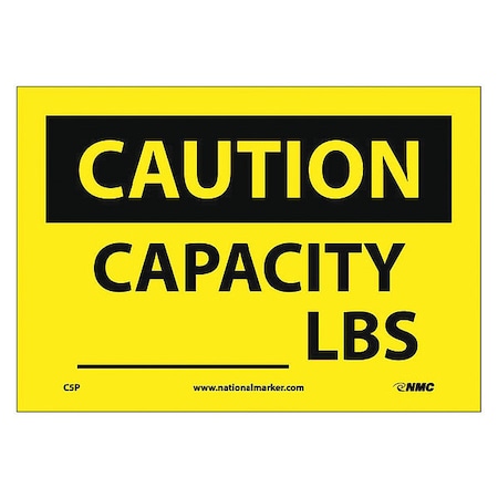 NMC C5P OSHA Sign, Legend "CAUTION - CAPACITY ______ LBS", 10" Length x 7" Height, Pressure Sensitive Vinyl, Black on Yellow