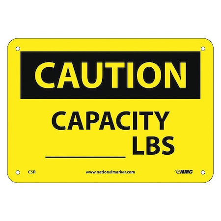 NMC C5R OSHA Sign, Legend "CAUTION - CAPACITY ______ LBS", 10" Length x 7" Height, Rigid Plastic, Black on Yellow