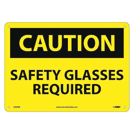 NMC C600AB OSHA Sign, Legend "CAUTION - SAFETY GLASSES REQUIRED", 14" Length x 10" Height, Aluminum, Black on Yellow