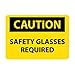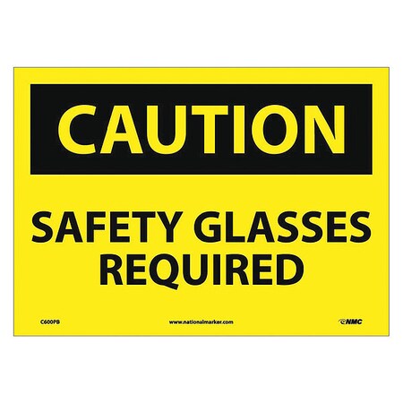 NMC C600PB OSHA Sign, Legend "CAUTION - SAFETY GLASSES REQUIRED", 14" Length x 10" Height, Pressure Sensitive Vinyl, Black on Yellow
