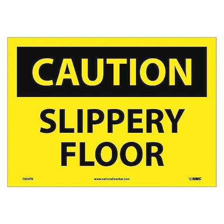 NMC C604PB OSHA Sign, Legend "CAUTION - SLIPPERY FLOOR", 14" Length x 10" Height, Pressure Sensitive Vinyl, Black on Yellow