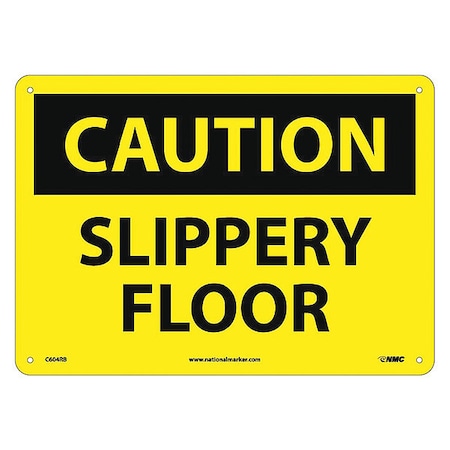 NMC C604RB OSHA Sign, Legend "CAUTION - SLIPPERY FLOOR", 14" Length x 10" Height, Rigid Plastic, Black on Yellow