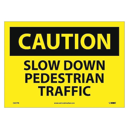 NMC C607PB OSHA Sign, Legend "CAUTION - SLOW DOWN PEDESTRIAN TRAFFIC", 14" Length x 10" Height, Pressure Sensitive Vinyl, Black on Yellow