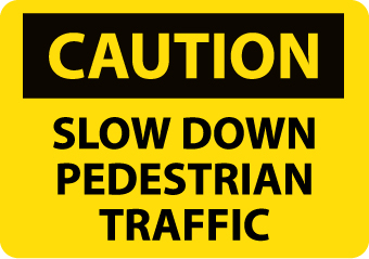 | Feature | Header "CAUTION" and legend "SLOW DOWN PEDESTRIAN TRAFFIC" |